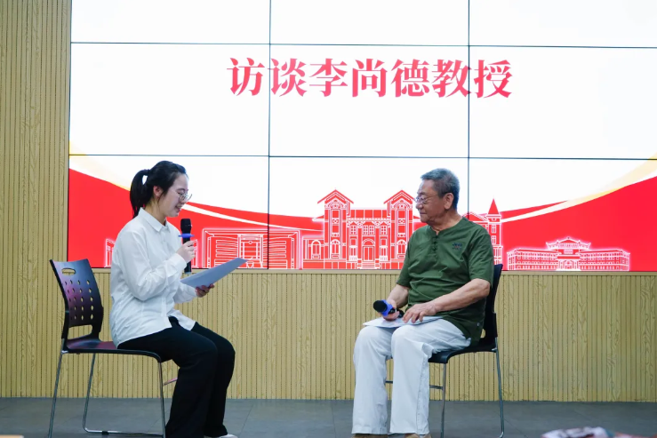 活动伊始,深耕马克思主义哲学研究近六十年的李尚德教授,接受青马学堂班长黄妍凝的访谈。李尚德教授以自身踏上马克思主义哲学研究道路的个人经历为切入点,讲述其感悟和把握马克思主义真理力量的“来时路”。随后,他深入剖析了苏联解体的历史给青年学生的深刻警示:必须毫不动摇坚持和发展马克思主义,坚定共产主义远大理想和中国特色社会主义共同理想。接着,他分享了自己对“中国共产党人精神谱系”的理解,认为中国共产党人的精神谱系是中国共产党人优良品格的“家谱”,期望同学们传承中国共产党人的优良品格,同时保持清醒头脑,为建设强大的祖国贡献力量。