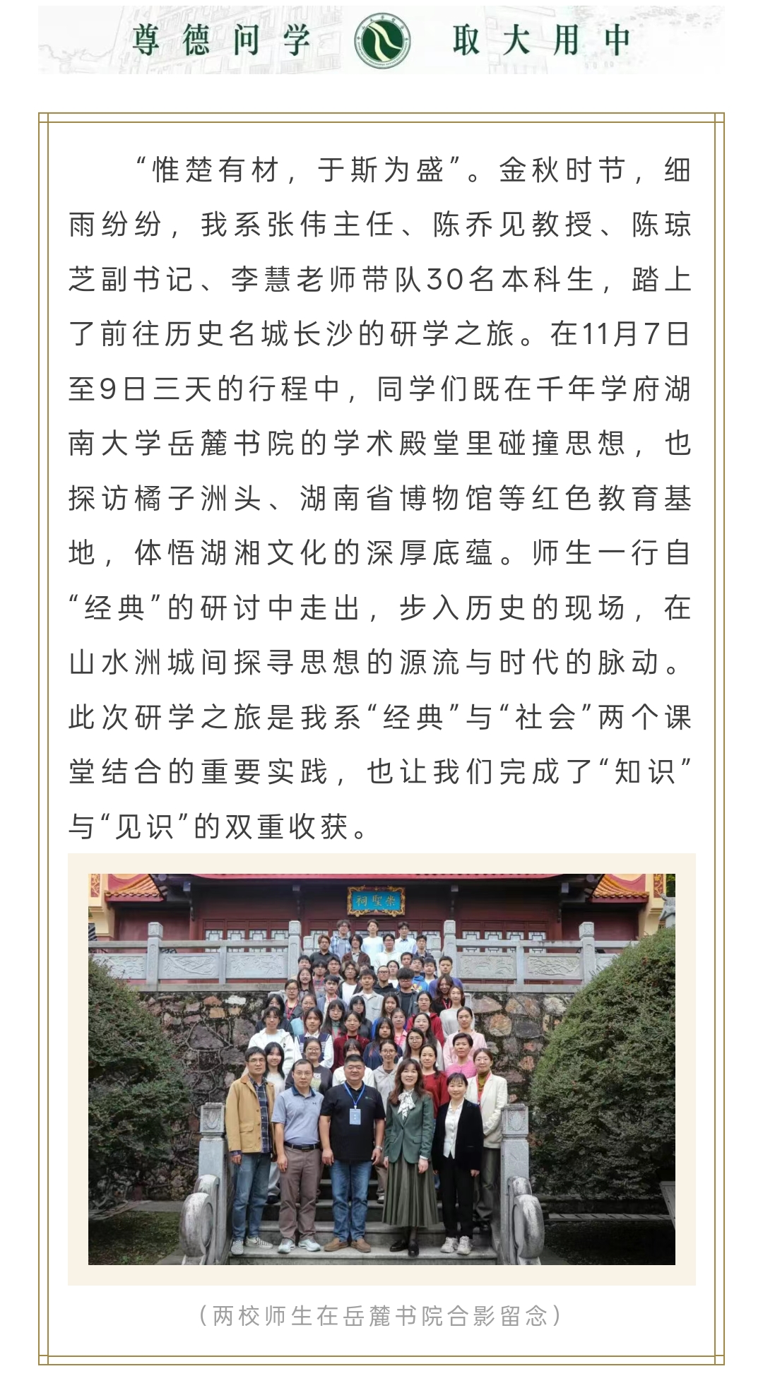 湘楚文蕴觅真知,学思践悟促成长——长沙研学之旅回顾