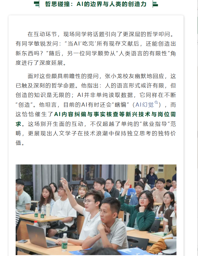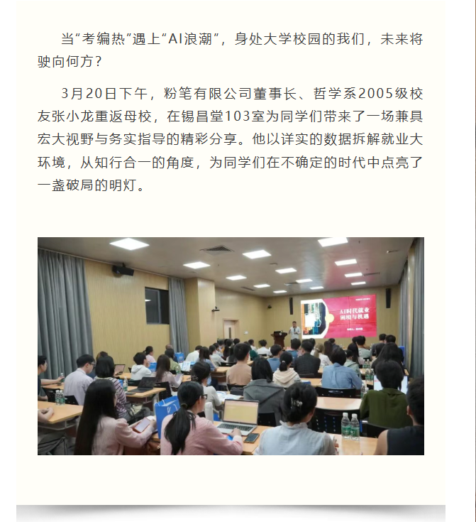 导航痕迹 国外色情 成长论坛回顾丨张小龙:AI时代的就业困境与机遇——人文学子的破局之道 成长论坛回顾丨张小龙:AI时代的就业困境与机遇——人文学子的破局之道 发布日期:2026-03-27 扫描此二维码分享
