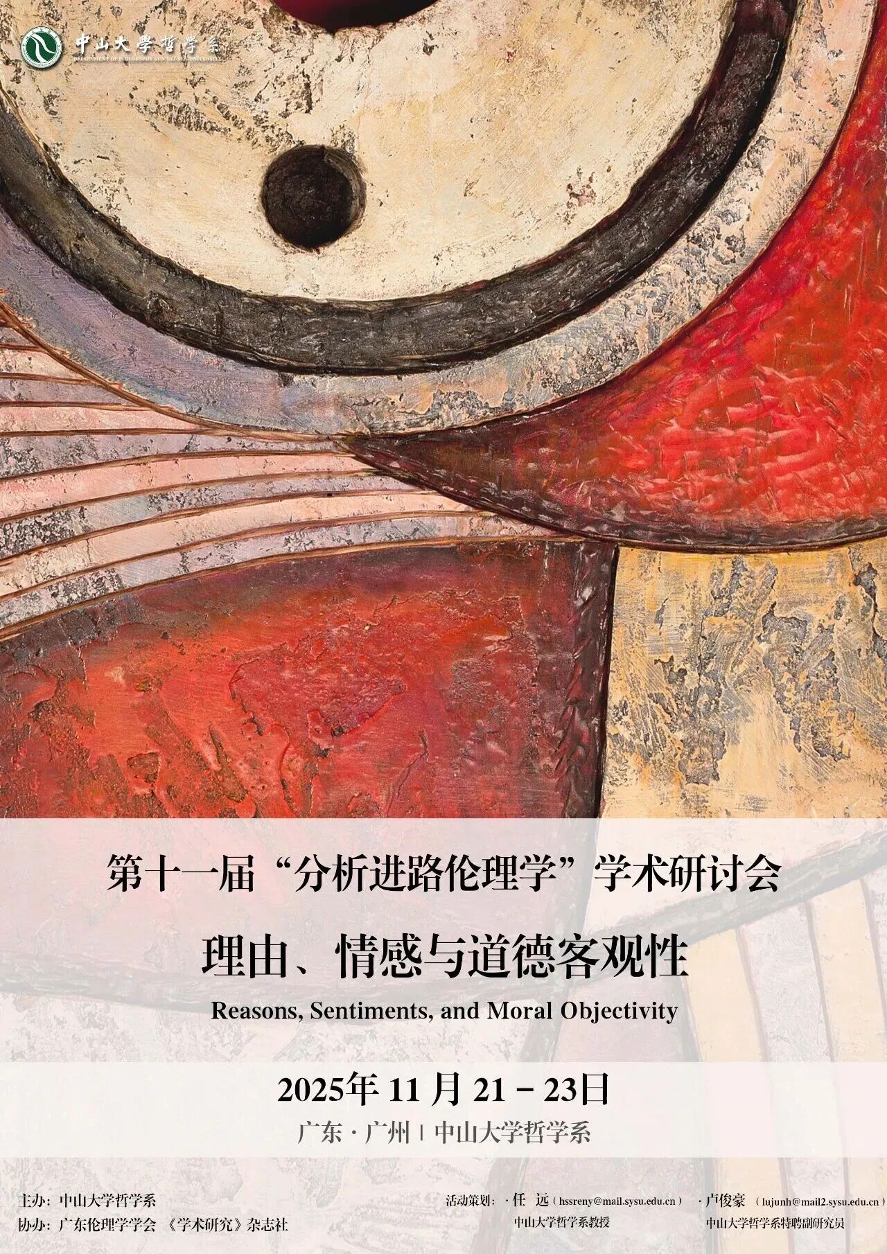 会议预告 | 第十一届“分析进路伦理学”学术研讨会:理由、情感与道德客观性