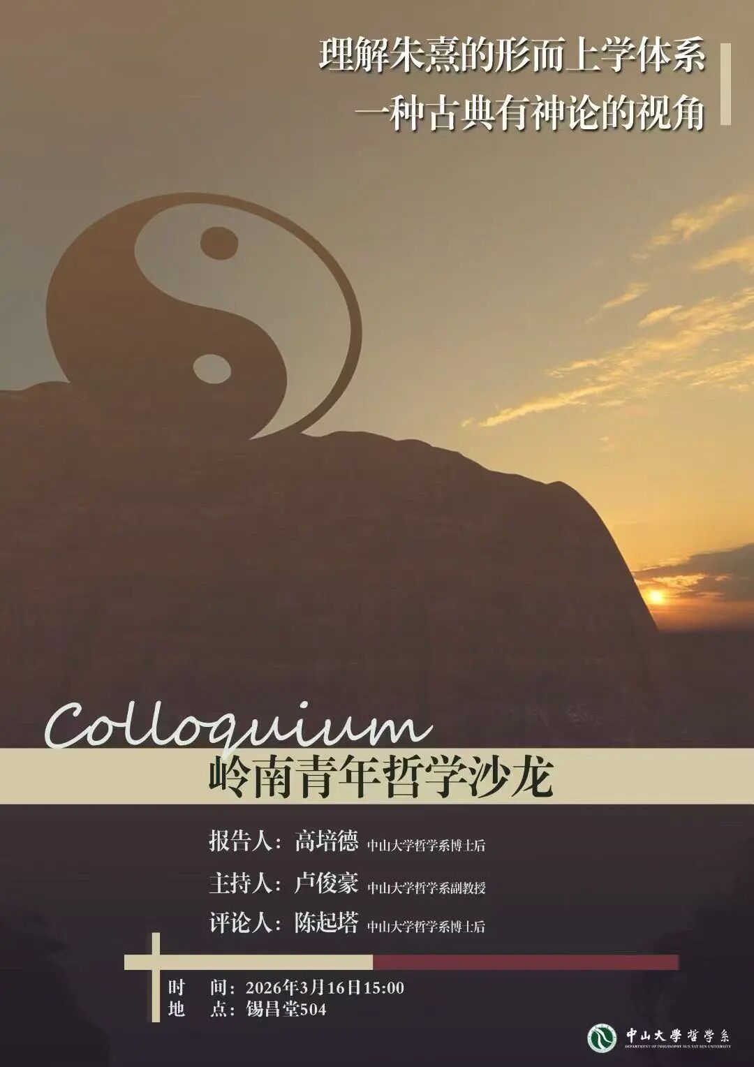 岭南青年哲学沙龙预告丨高培德:理解朱熹的形而上学体系——一种古典有神论的视角